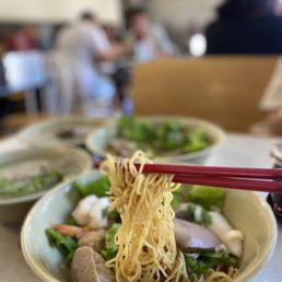 Came in for lunch as this is down the street from the office. Wasn't too busy, but a steady flow of to-go orders and walk ins. Started off with fried shrimp won tons and these were amazing. Super crispy, lite and airy, but super hot as they literally came out of the fryer... talk about fresh! They also use a whole shrimp and don't skimp by chopping it up or mince it. I then moved to a large #10 which was excellent. Super flavorful and authentic. The meat was nice and the won tons were fall apart good, but not loose. Service was quick and efficient, but this is a no frills kind of place. The inside was a tad dingy, but this place is super fair priced. Parking is ample on the streets in and around the area.